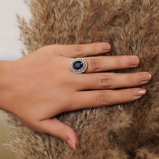 Lustrous Silver Blue Sapphire Solitaire Ring