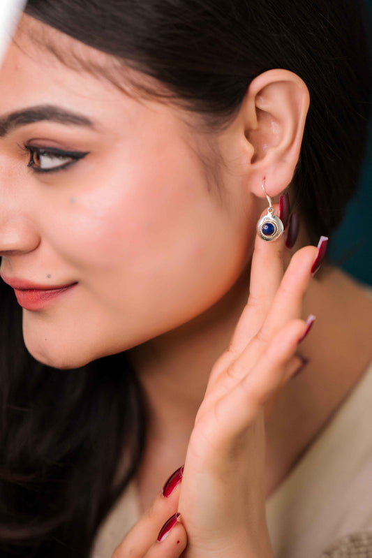 Oxidised Silver Celestial Blue Sapphire Earrings