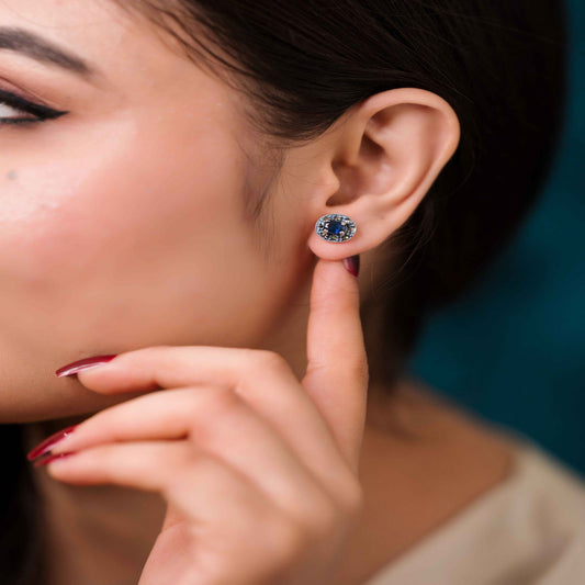 Oxidised Silver Celestial Blue Sapphire Earrings