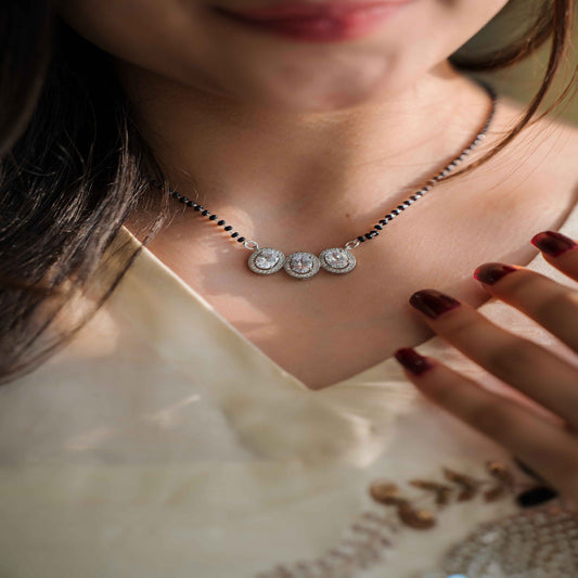 Halo Oval Solitaire Red Ruby Mangalsutra